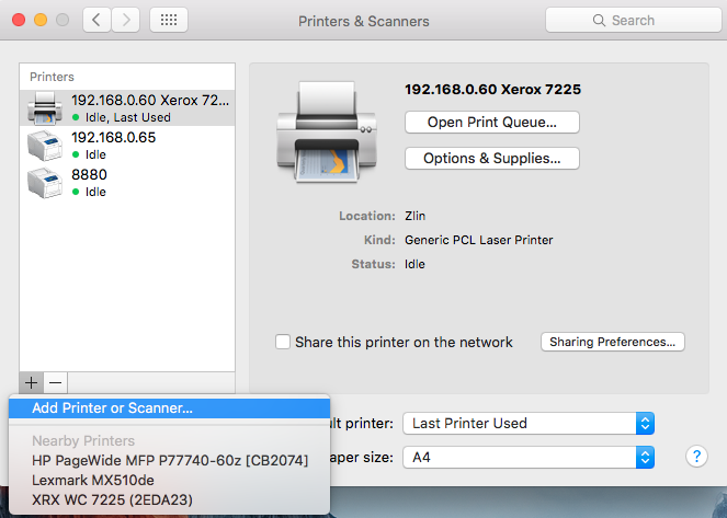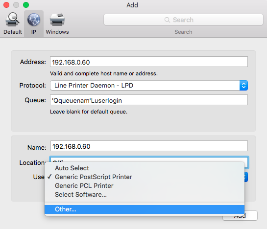 Add printer on Mac