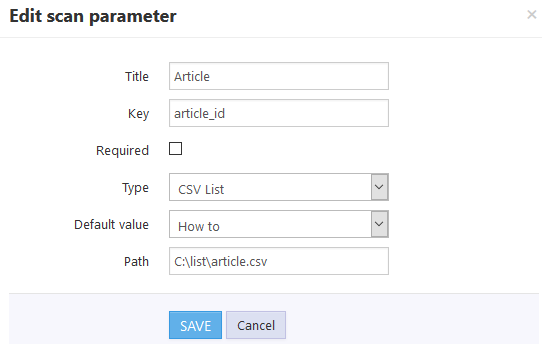 - Key - key which will be used in naming or destination. To use the parameter selected value put to the field [parameter_key]. If you want to assign the parameter to document stored to SharePoint it is necessary to put the Key name same as is name of column in SharePoint (ex. Surname).