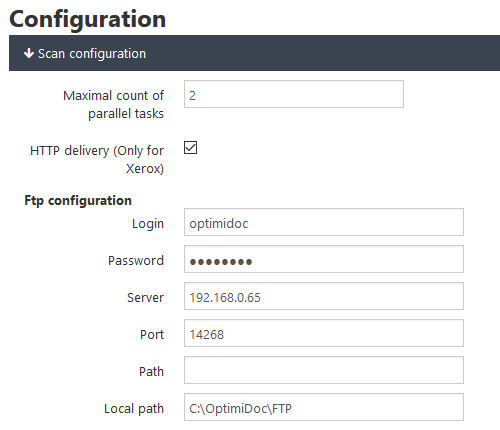 FTP server is used for documents delivery from devices to OptimiDoc server.