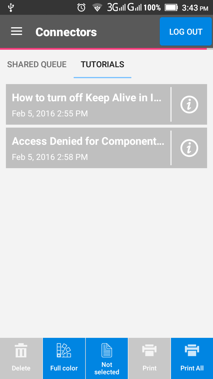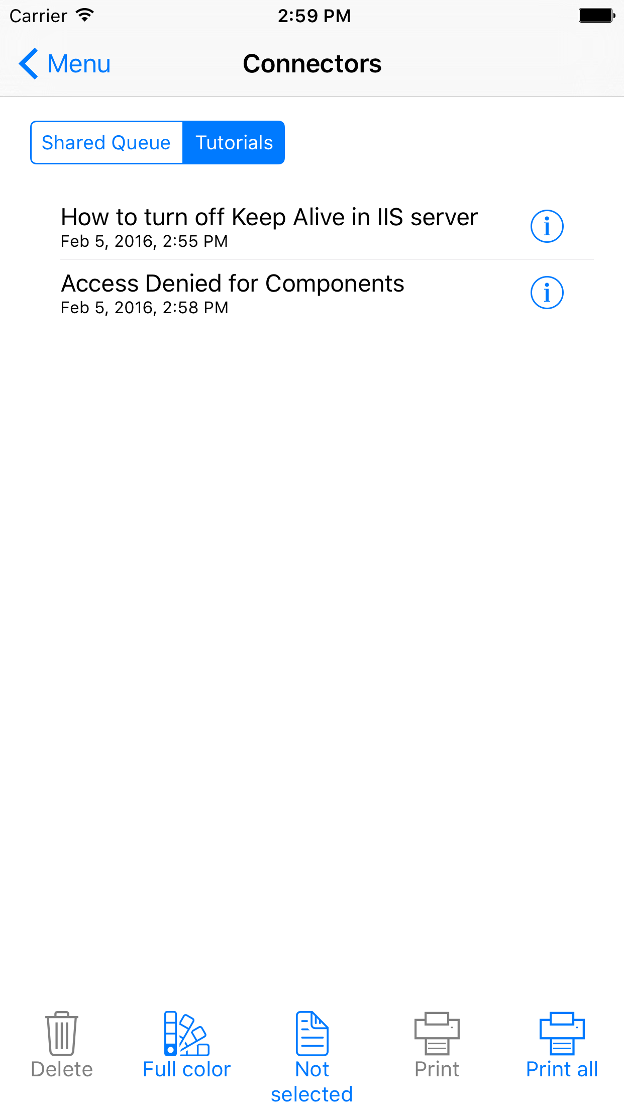 - Tap the tabs on the top to switch between the print connectors from OptimiDoc.