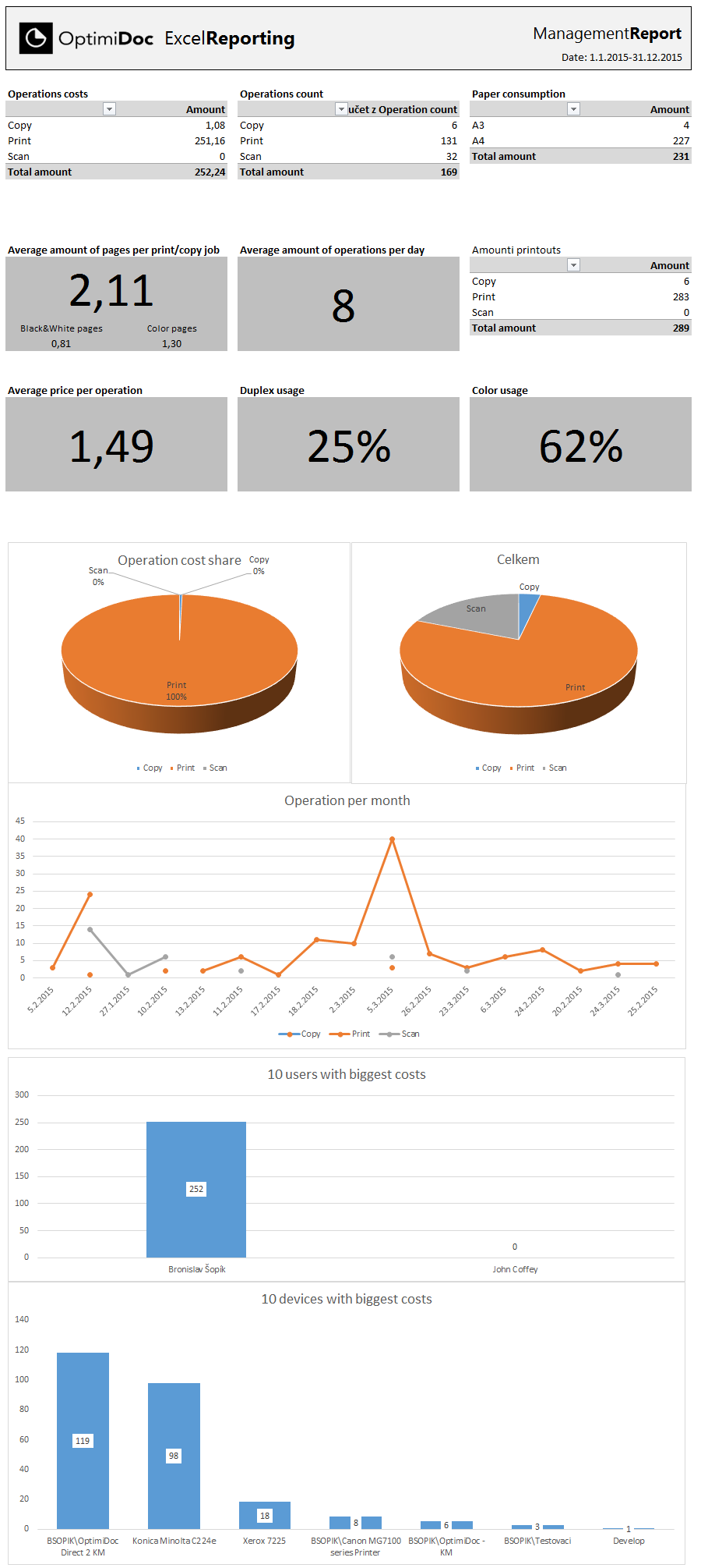Excel reporting provide to administrator preprepared template which can be used for detailed analyses.