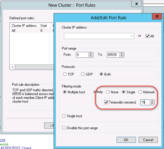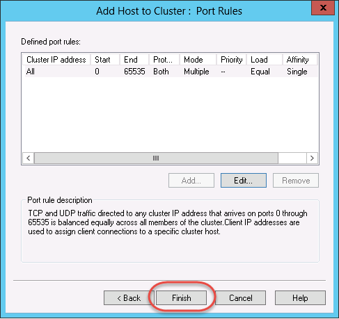 7. Edit the port rules: - Affinity: Single - Timeout: 15 minutes and Click on Finish. |