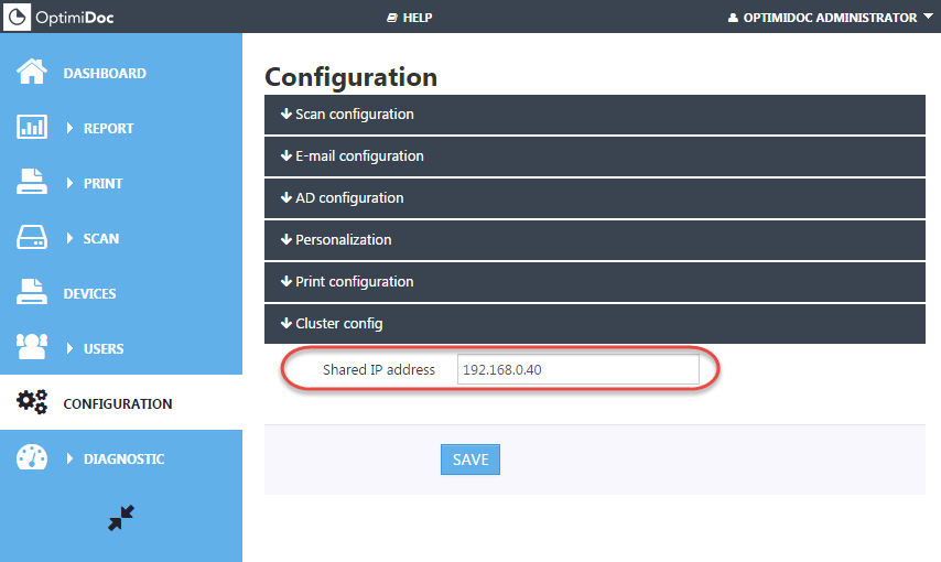2. Login to OptimiDoc Administration and open Settings and enter Public IP address. |