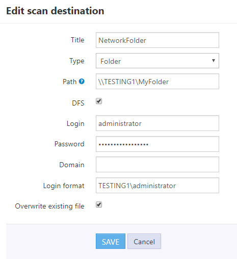 - Login format - format of the domain login (e.g. [LOGIN]@[DOMAIN] for Windows, [DOMAIN]\[LOGIN] for Samba, etc.)