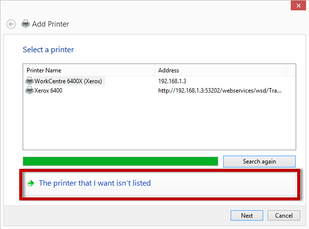 3. System opens the Add Printer window. Click on The printer that I want isn't listed |
