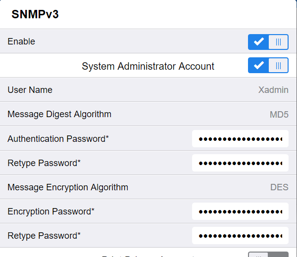 Before setting up device in OptimiDoc please make sure you have SNMPv3 enabled on the device and System Administrator Account created.