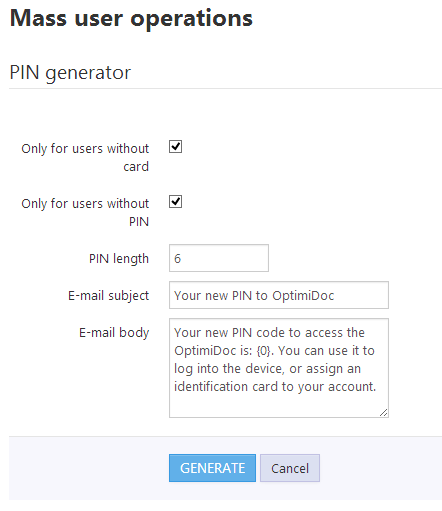 OptimiDoc generates the email with new PIN and sends it to each user in the system.