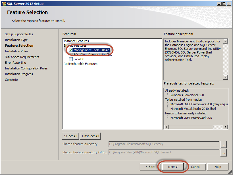 5. From features select the Management Tools - Basic and Click on Next button. |