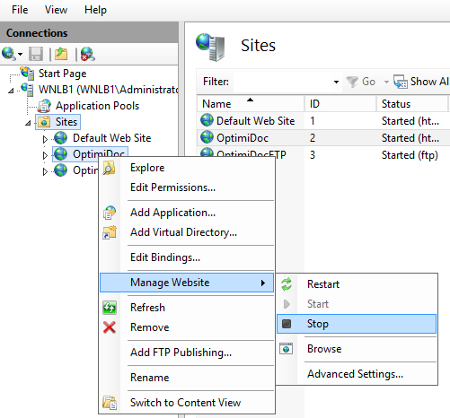 - Stop the OptimiDoc website in IIS