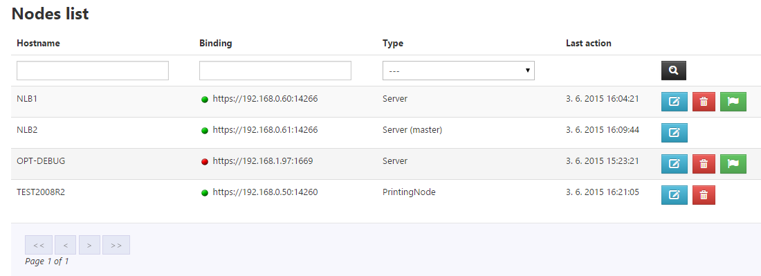 Nodes list contains all connected OptimiDoc Servers and Print Nodes.