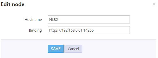 Edit can be used for change name of Server/Node in case of change in operating system or in case of not automatic update of binding. Click on