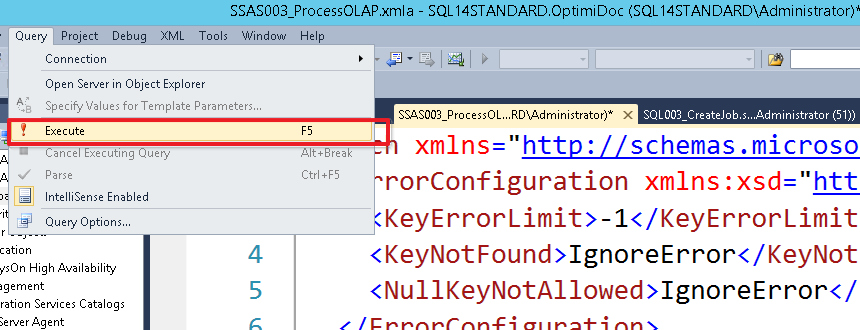 7.Open and execute SSAS003_ProcessOLAP.xmla. |