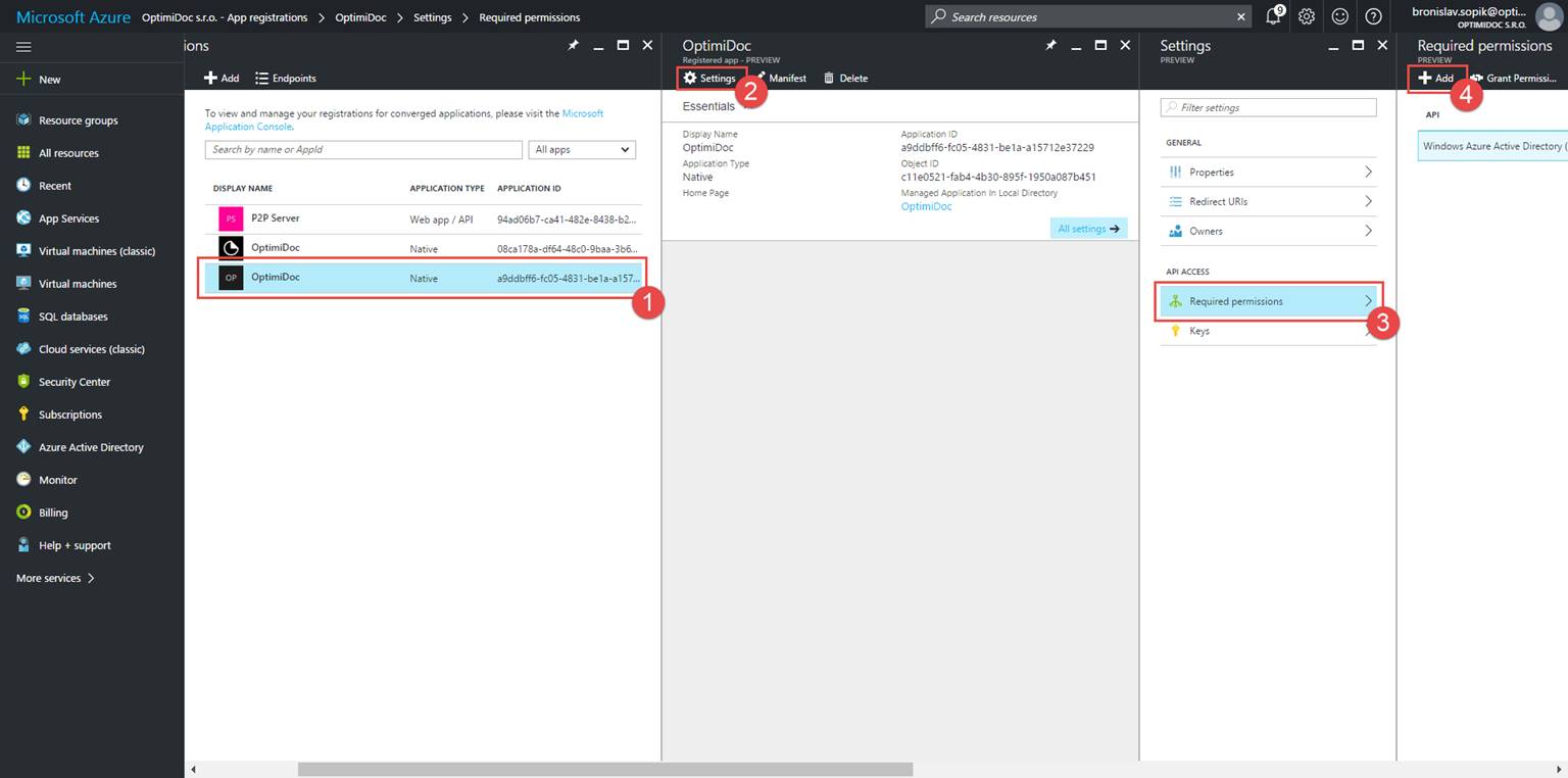 4. After creation of application, go to application details> settings > Required permissions and Click on add button. |