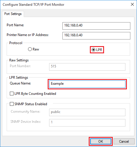 To print using a LPR queue, enter the project code into the printer's queue name. Below are instructions for Microsoft Windows.
