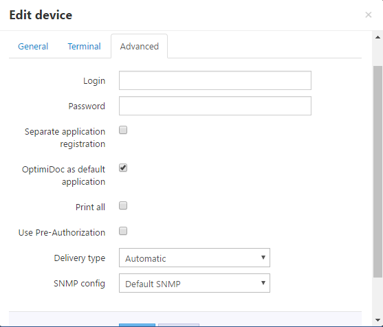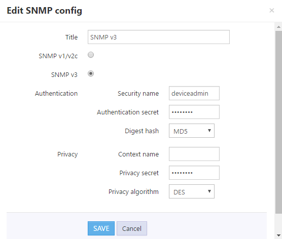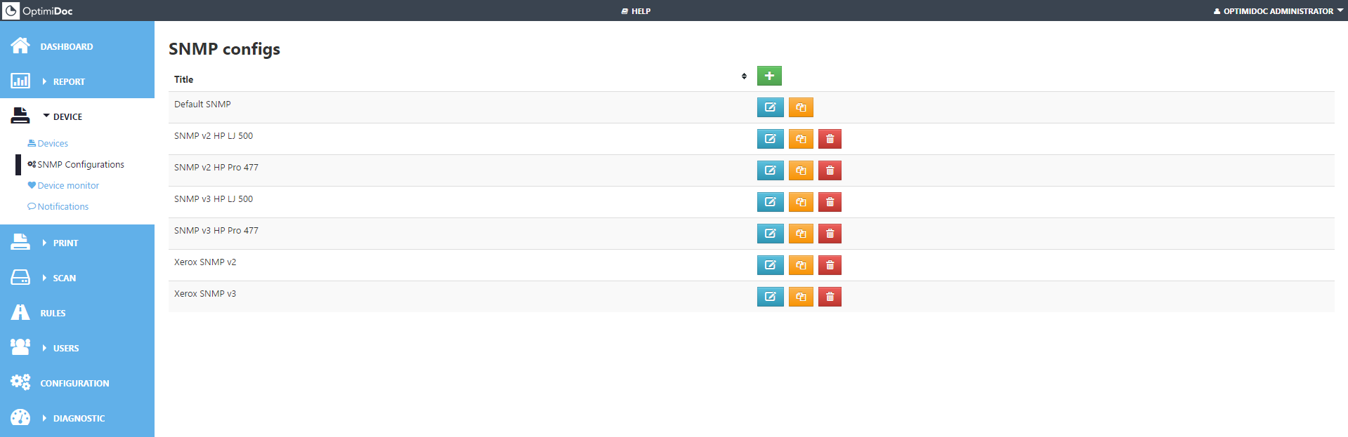SNMP configuration allows you to define custom SNMP settings in OptimiDoc.