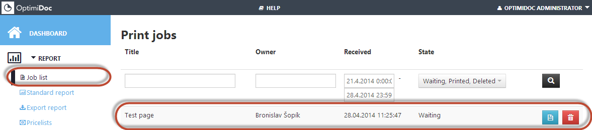 12. Go to Job list and check if the job was received. If no please go to Diagnostic and check the section Unauthorized accesses. For detail visit the page Unauthorized accesses. |