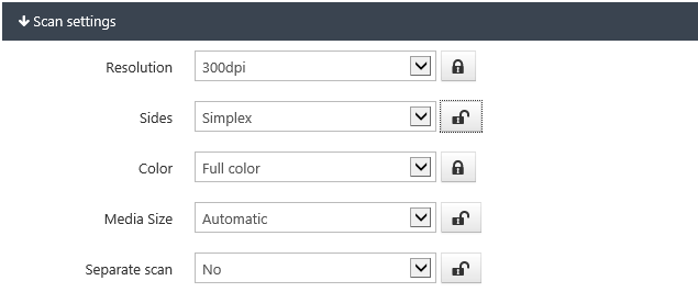 Scan settings can be locked or unlocked to modification by users. To lock/unlock setting Click on /
