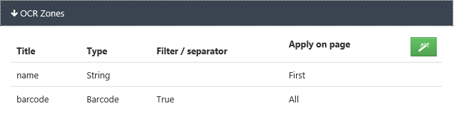 - Zone - selected zone will be used for document separation.