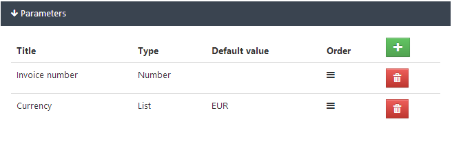 Parameter can have defined order on user interface. To change the order Click on button and drag the item to requested position.