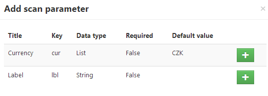 1. To add scan parameter Click on button and select offered parameters.