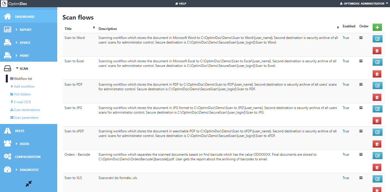 Each scan workflow can have assigned none, one or multiple scan parameters. Such assigned parameters can be used in document name, destination or saved as metadata. Workflow can has assigned only parameters created in the scan parameters section.