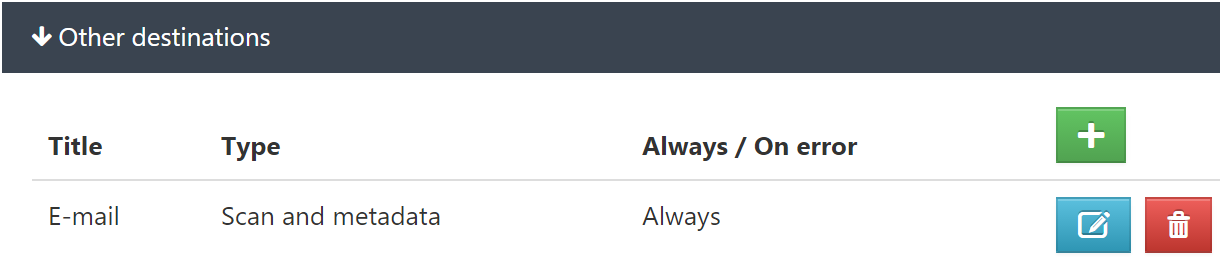 - Destination - definition of scanned document storage