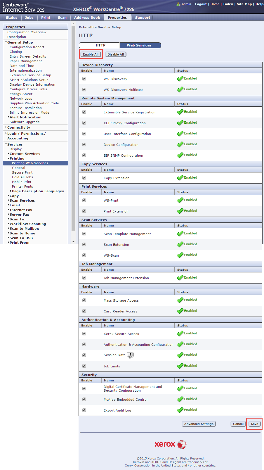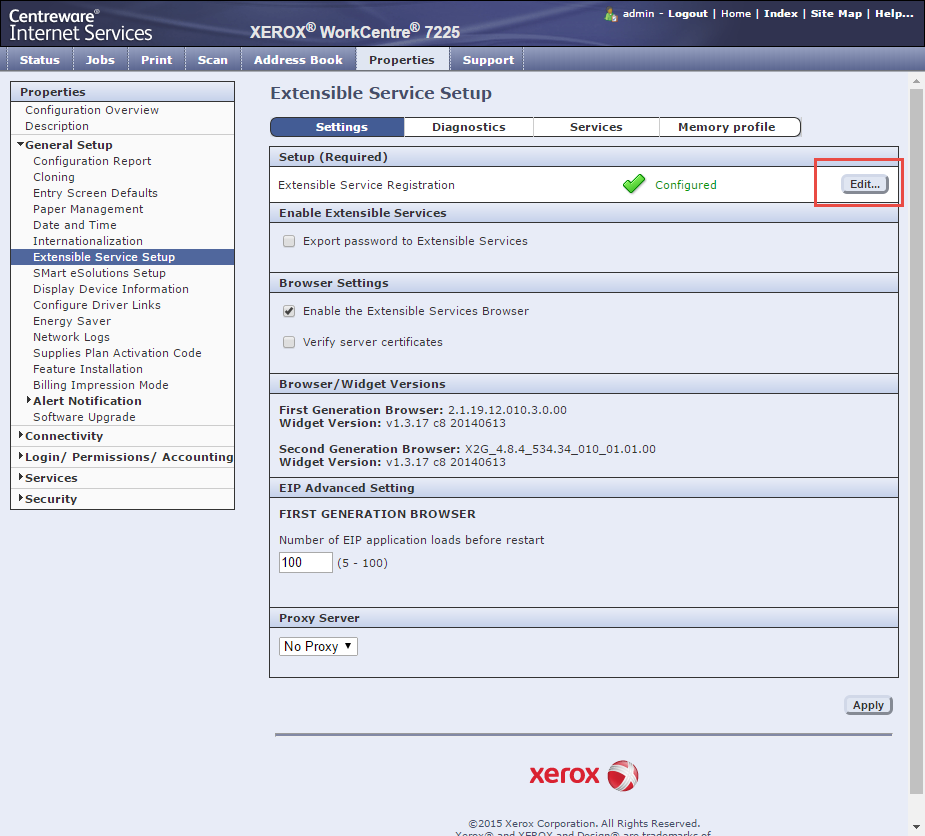 Supported devicesXerox device configuration Xerox WorkCentre ConnectKey models For the installation of OptimiDoc to ConenctKey models is necessary to enable all features in Extensible Service Setup. There are no other requirements.